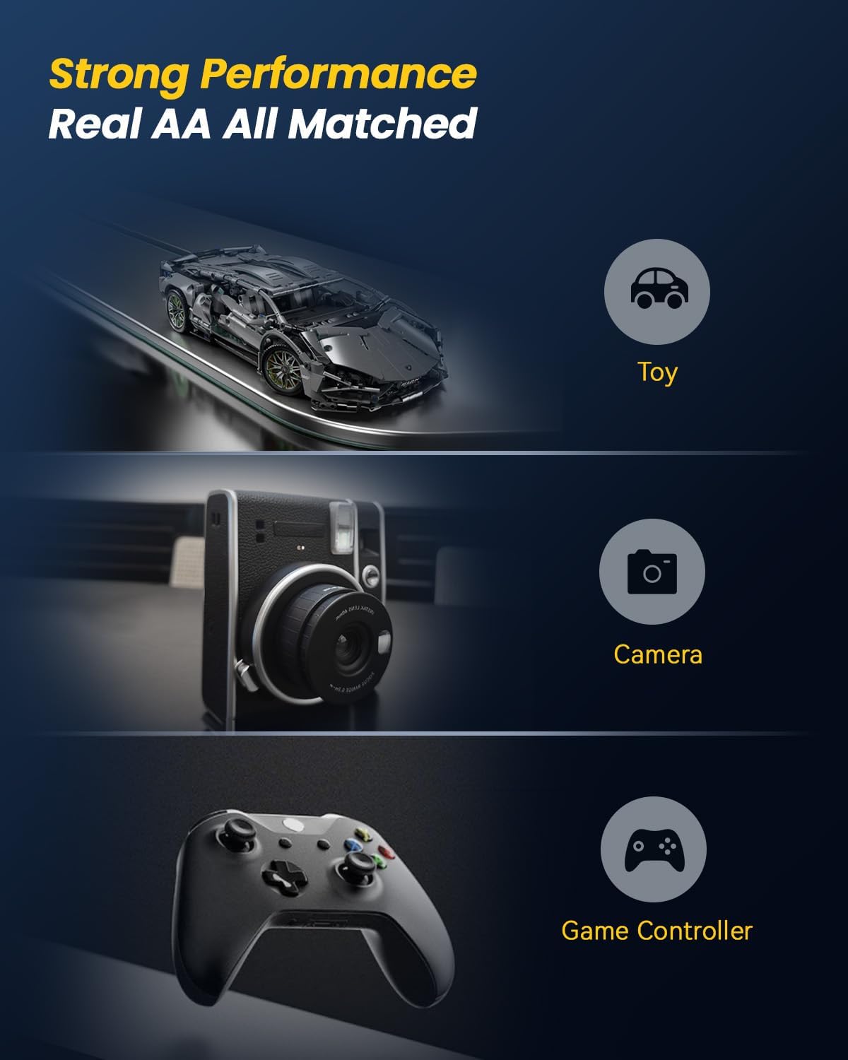 【Smart LED Display】The LED light displays charging status. Flashing Green indicates charging, Static Green indicated fully charged, Red indicates error battery or temperature state. For rechargerable 1.5V AA/AAA Lithium battery can in 4 hours in Static Green fully charged state.