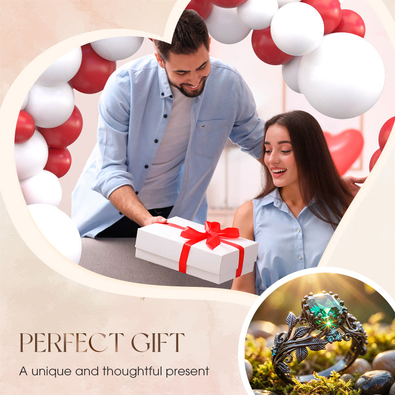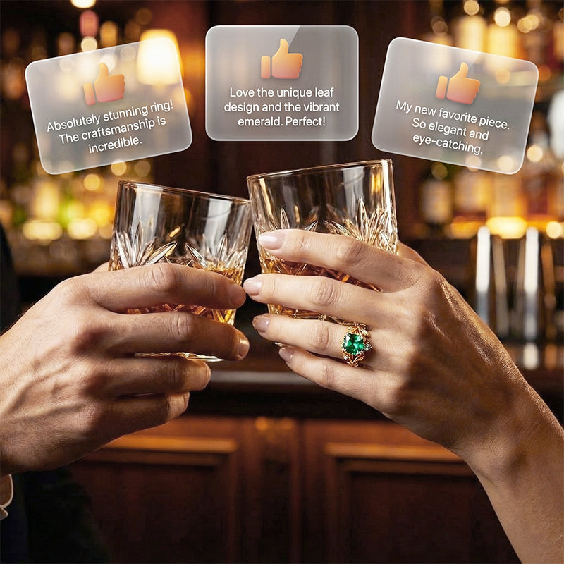 🔥🎁New arrival 50% OFF💥Green Synthetic Crystal Ring with Intricate Leaf