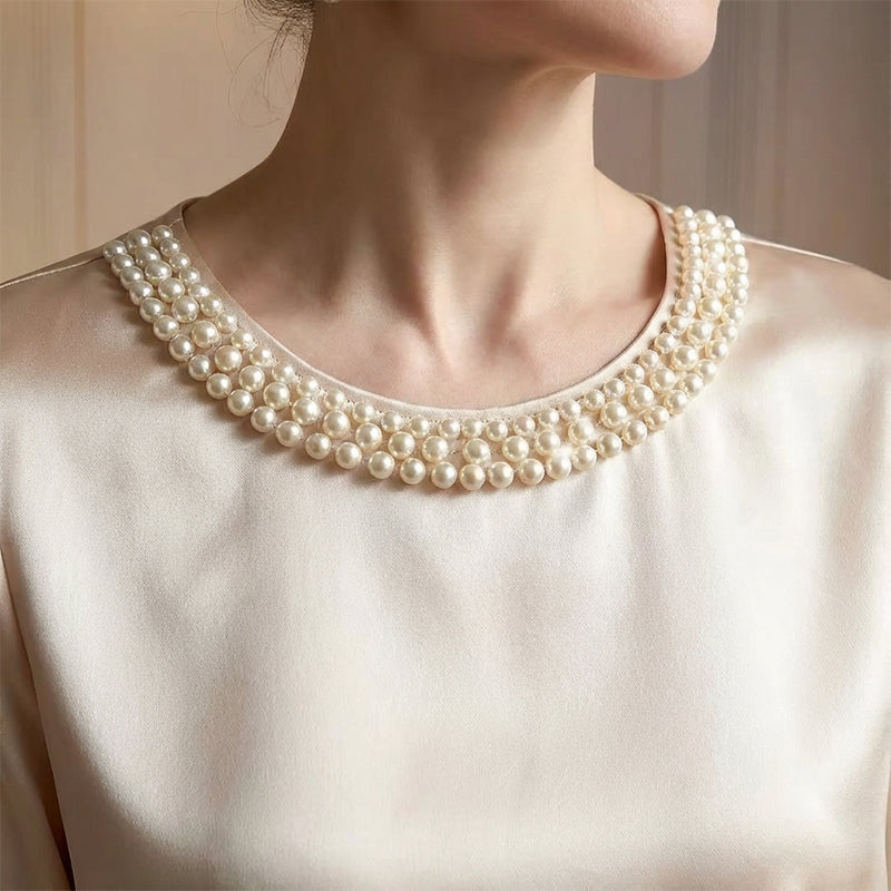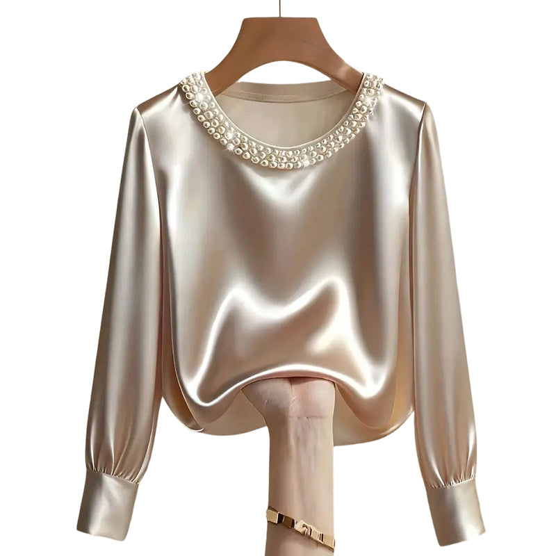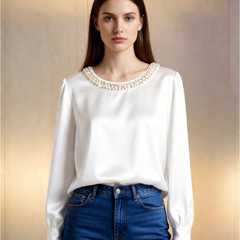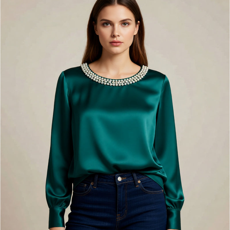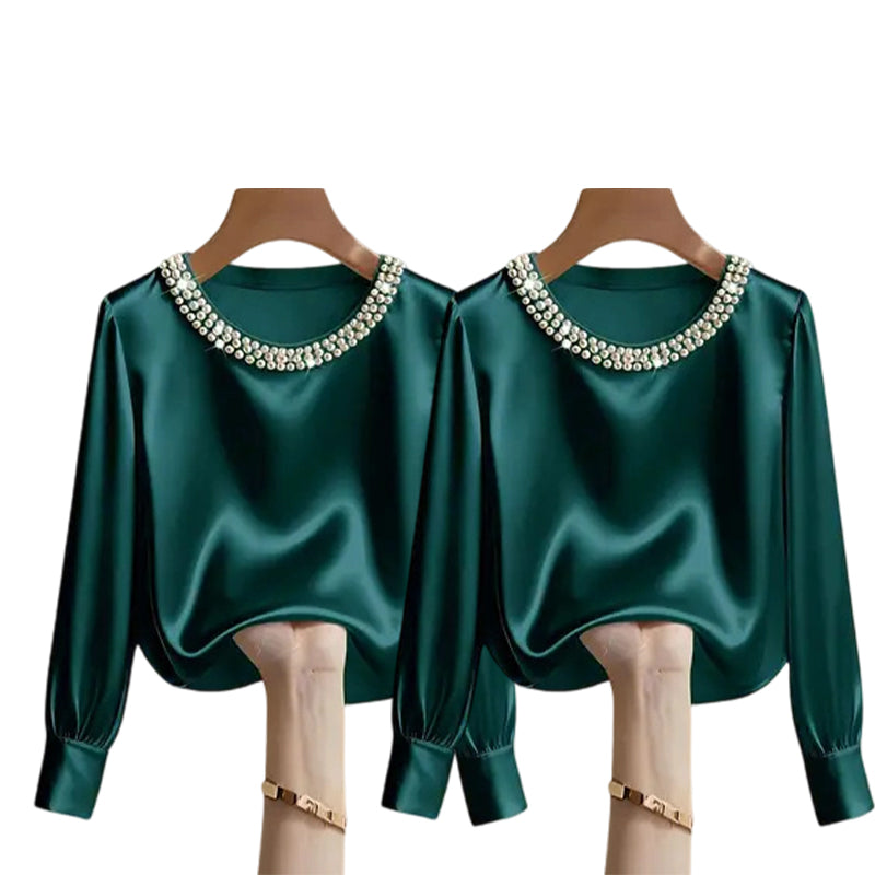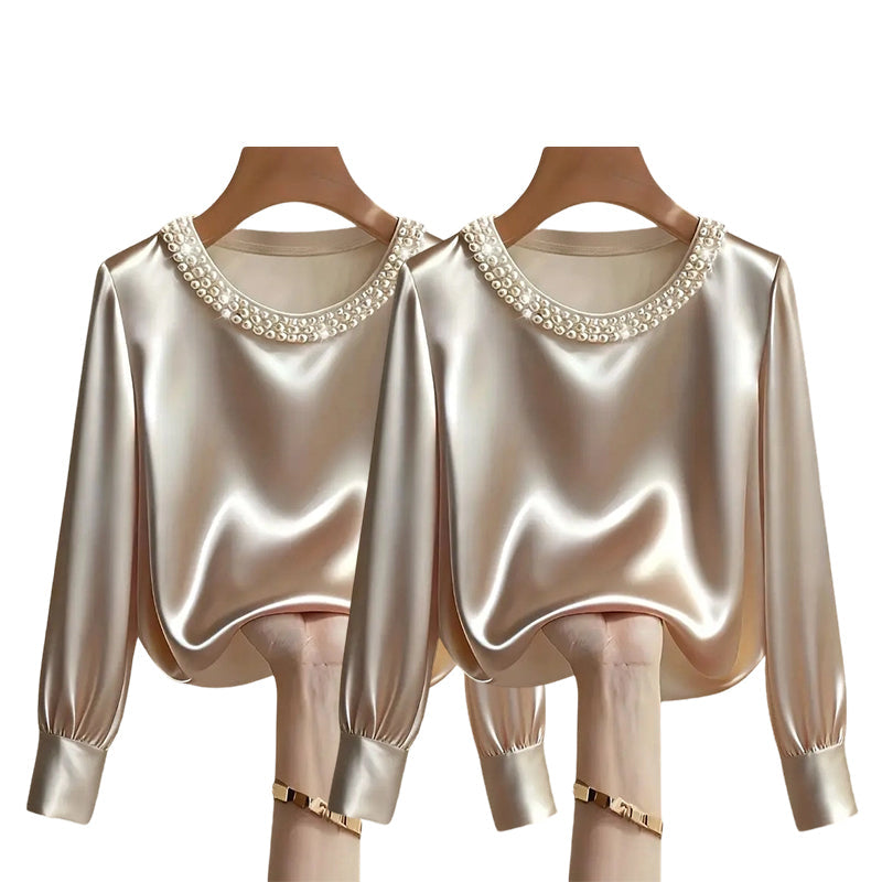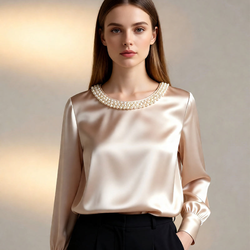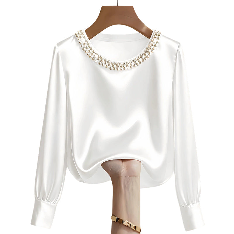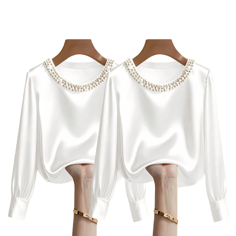 đ„New Arrivalsđ„Womenâs Elegant Synthetic Pearl Crew Neck Satin Top